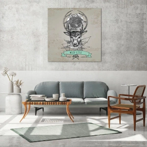 Cuadro sobre vidrio - Impresiones sobre Vidrio - Dibujo geométrico de un ciervo con la inscripción Vida Silvestre - 100x70cm - Visión de San Huberto - Decoración de pared moderna para salón y dormitorio ARTTOR