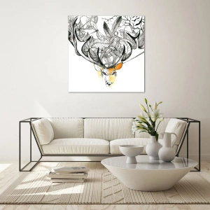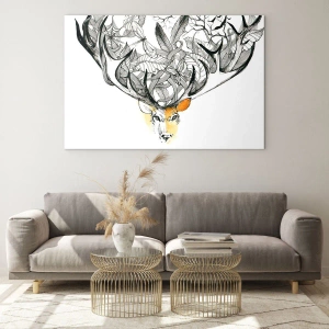 Cuadro sobre vidrio - Impresiones sobre Vidrio - Dibujo de un ciervo con astas elegantes - 70x50cm - Cuernos de la abundancia - Decoración de pared moderna para salón y dormitorio ARTTOR