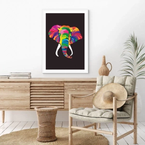 Póster en marco blanco - El elefante al que le gustaba bañarse en el arco iris - 70x50 cm