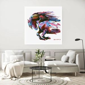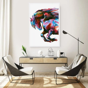 Póster - Caballo abstracto colorido en una pose dinámica - 50x70cm - En éxtasis - Decoración de pared moderna para salón y dormitorio ARTTOR