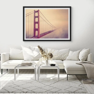 Póster en marco negro - Un puente en la niebla en tonos pastel, símbolo de elegancia y paz. - 70x50cm - Entre el cielo y la tierra - Decoración de pared moderna para salón y dormitorio ARTTOR