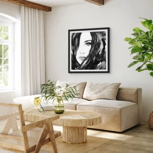 Póster en marco negro - Retrato de una dama en blanco y negro - 70x100 cm