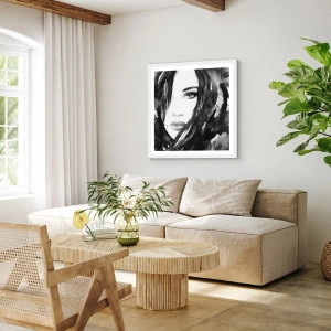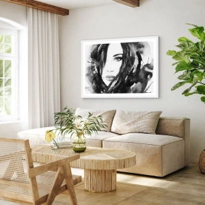Póster en marco blanco - Retrato de una dama en blanco y negro - 30x40 cm