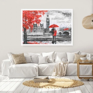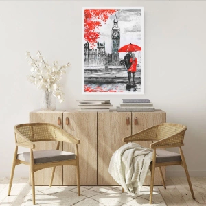 Póster - Una figura con un paraguas rojo frente al Big Ben en Londres. - 50x70cm - Londres enamora - Decoración de pared moderna para salón y dormitorio ARTTOR