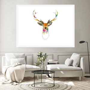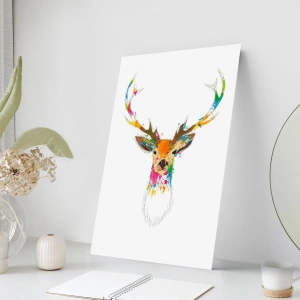 Póster - Cabeza de ciervo colorida en estilo artístico. - 100x70cm - Un suave ciervo bañado en color - Decoración de pared moderna para salón y dormitorio ARTTOR