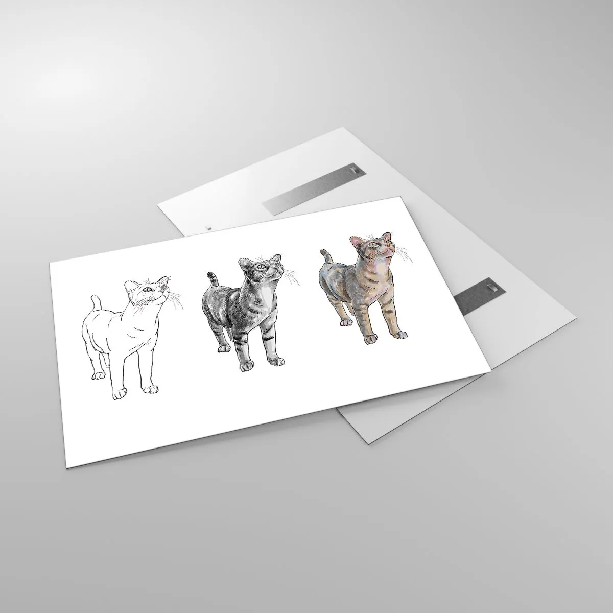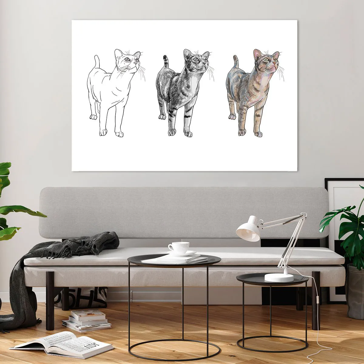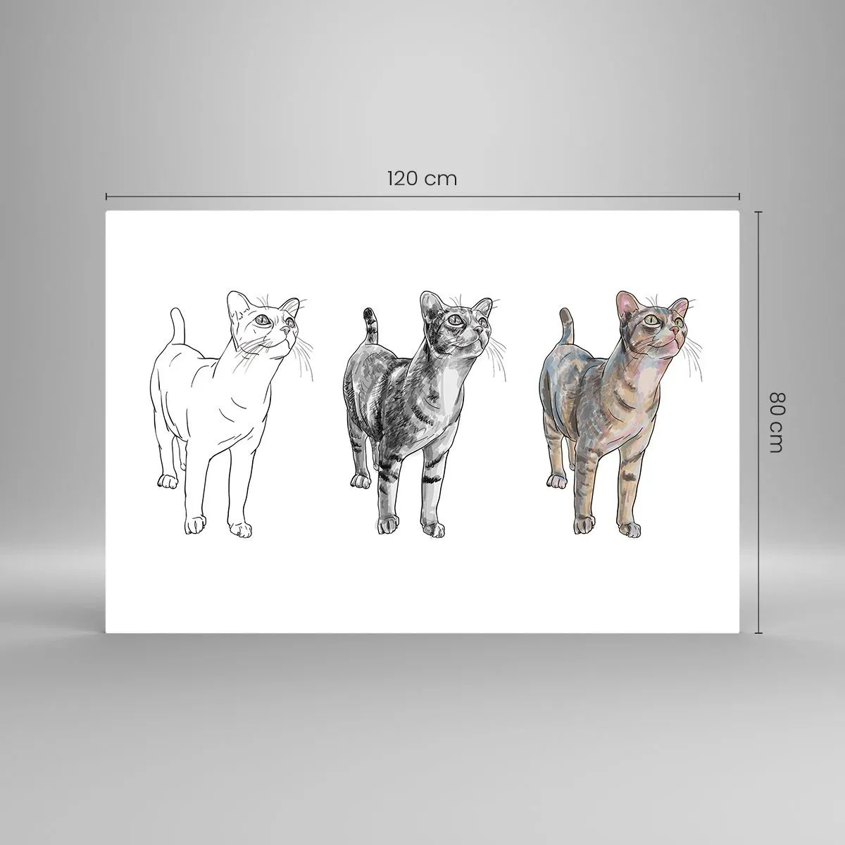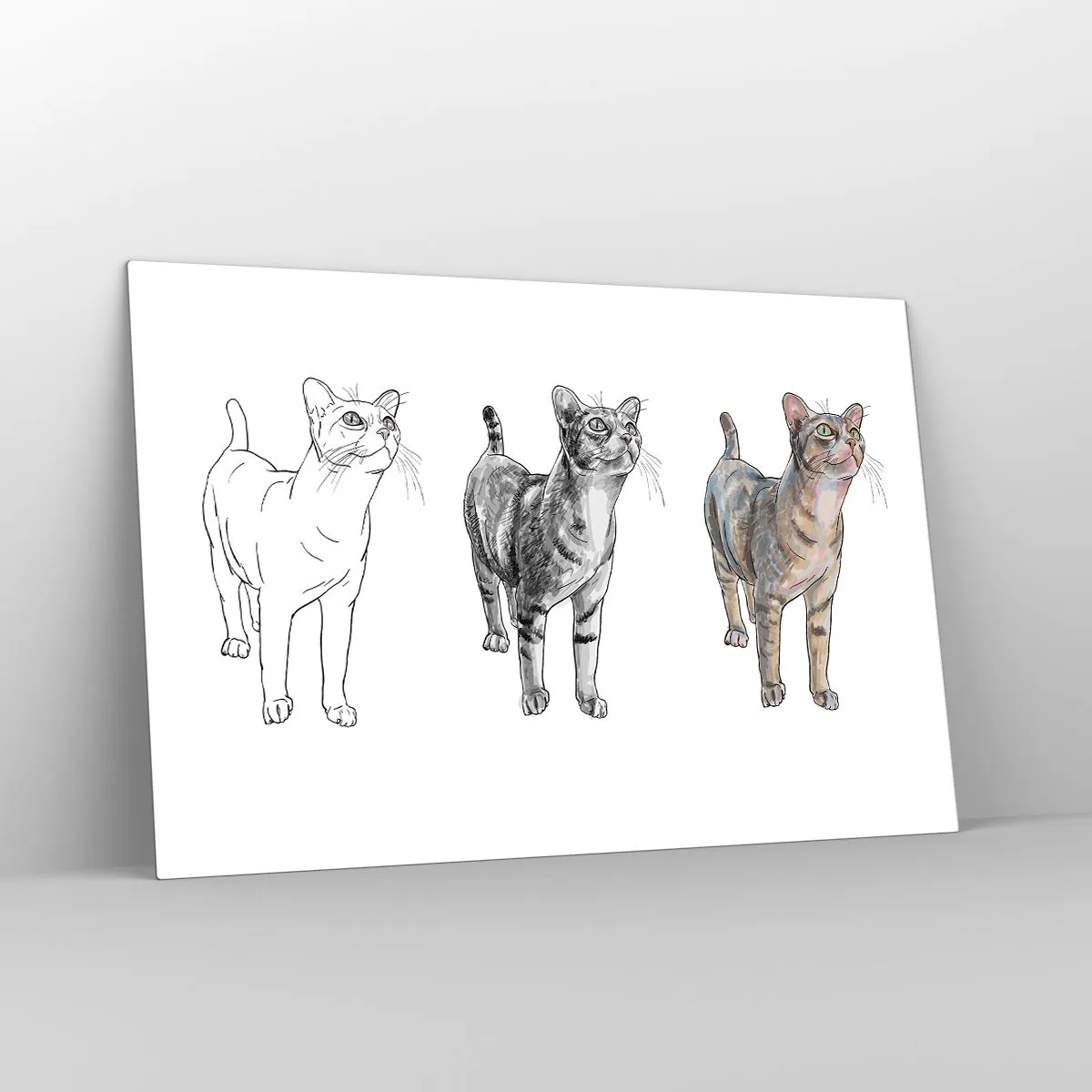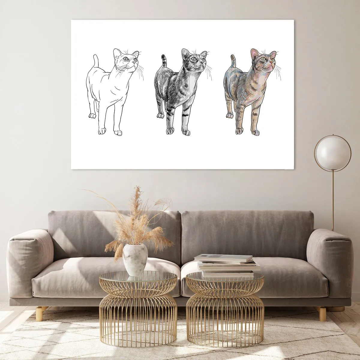 Cuadro sobre vidrio - Impresiones sobre Vidrio - La evolución de un gato desde el boceto hasta la ilustración en color - 120x80cm - Lección de dibujo - Decoración de pared moderna para salón y dormitorio ARTTOR