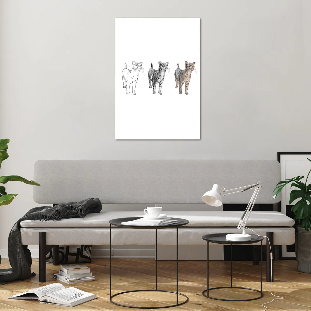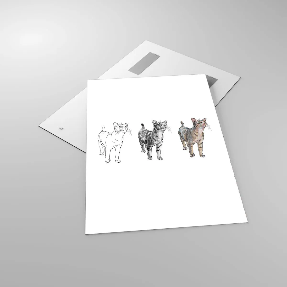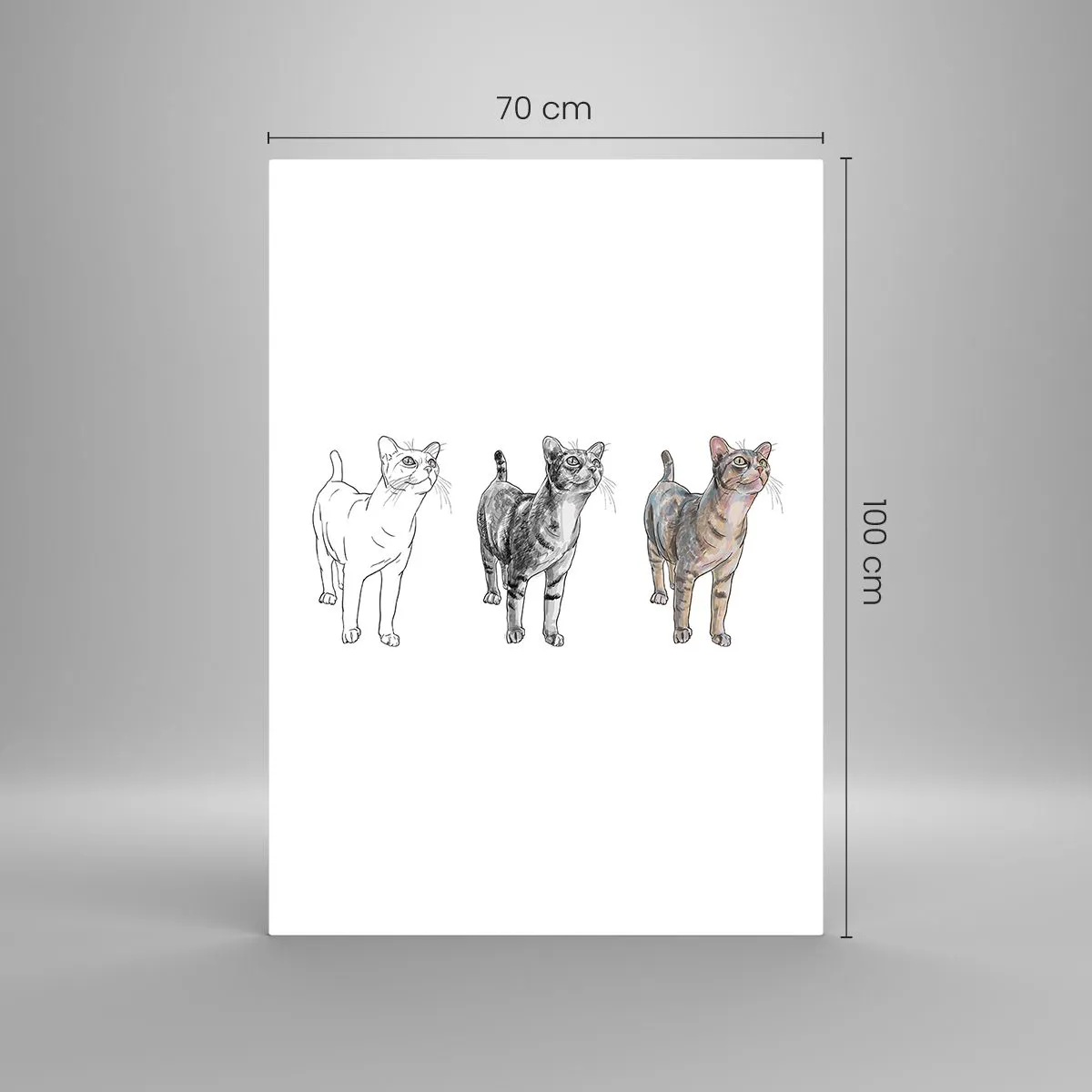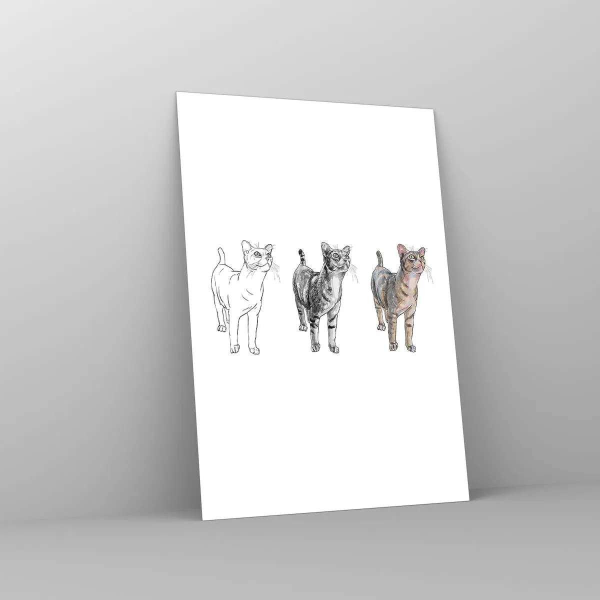 Cuadro sobre vidrio - Impresiones sobre Vidrio - La evolución del dibujo de un gato desde el boceto hasta la forma coloreada - 70x100cm - Lección de dibujo - Decoración de pared moderna para salón y dormitorio ARTTOR