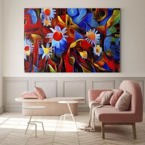 Cuadro sobre vidrio - Impresiones sobre Vidrio - Flores abstractas coloridas sobre un fondo de colores intensos. - 50x70cm - Colores de la vida - Decoración de pared moderna para salón y dormitorio ARTTOR