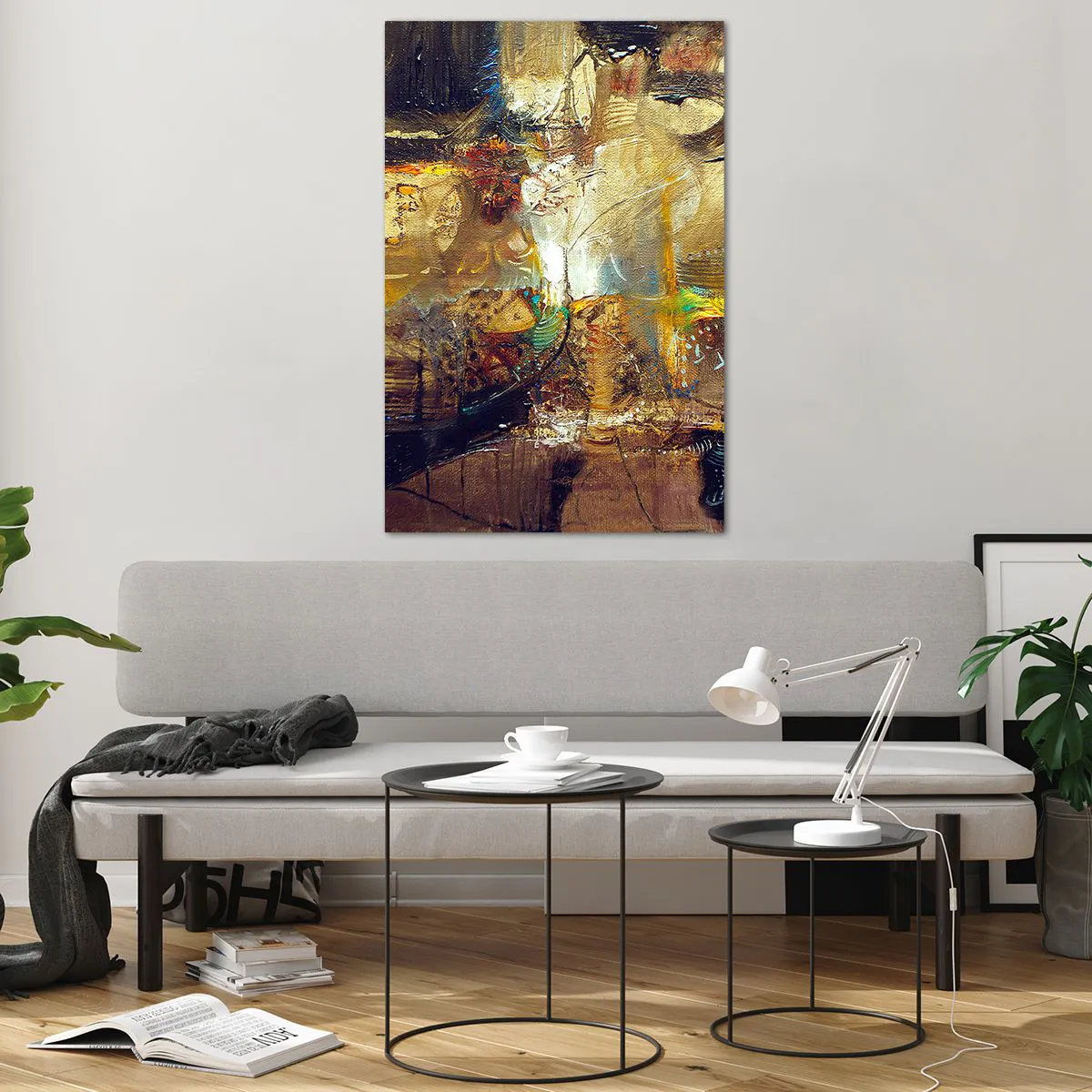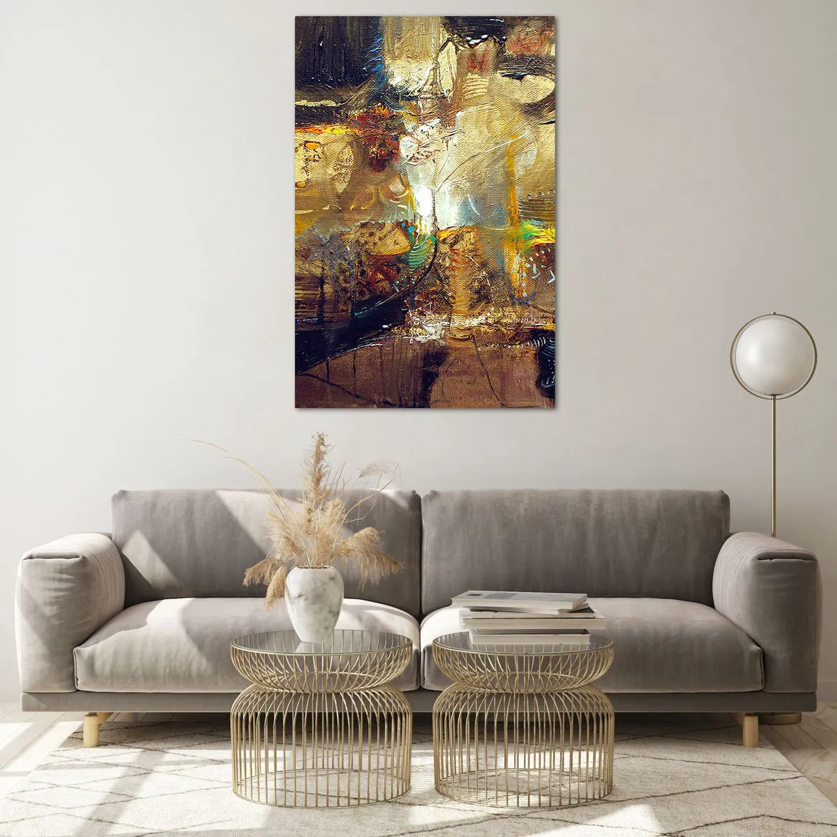 Cuadro sobre vidrio - Impresiones sobre Vidrio - Naturaleza muerta abstracta en colores cálidos - 80x120cm - Frío, templado, caliente - Decoración de pared moderna para salón y dormitorio ARTTOR