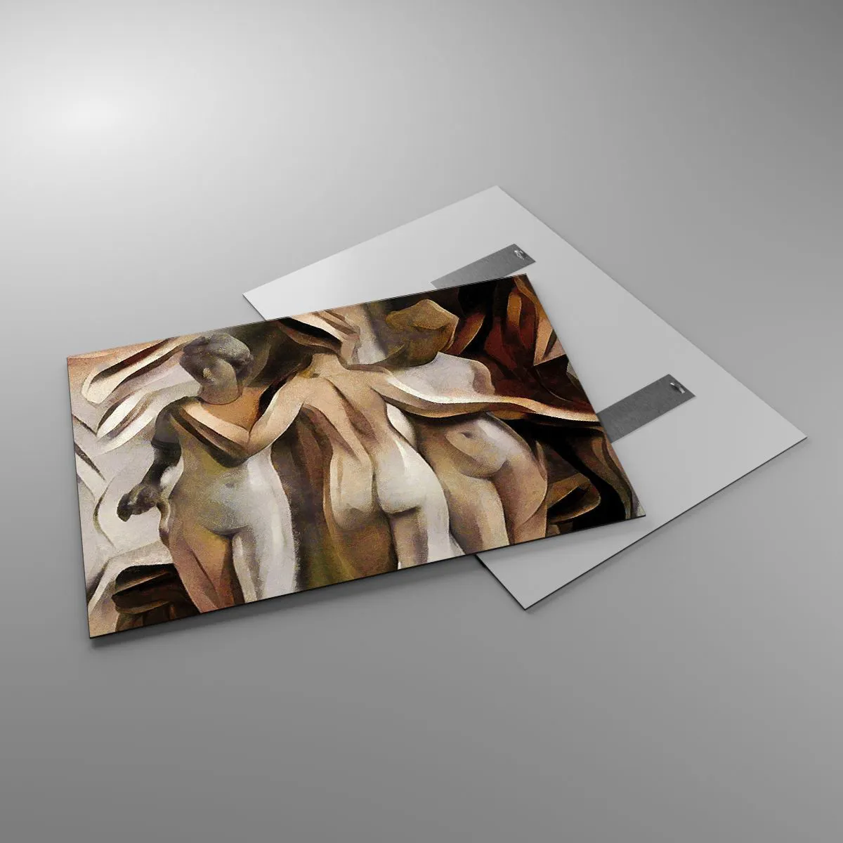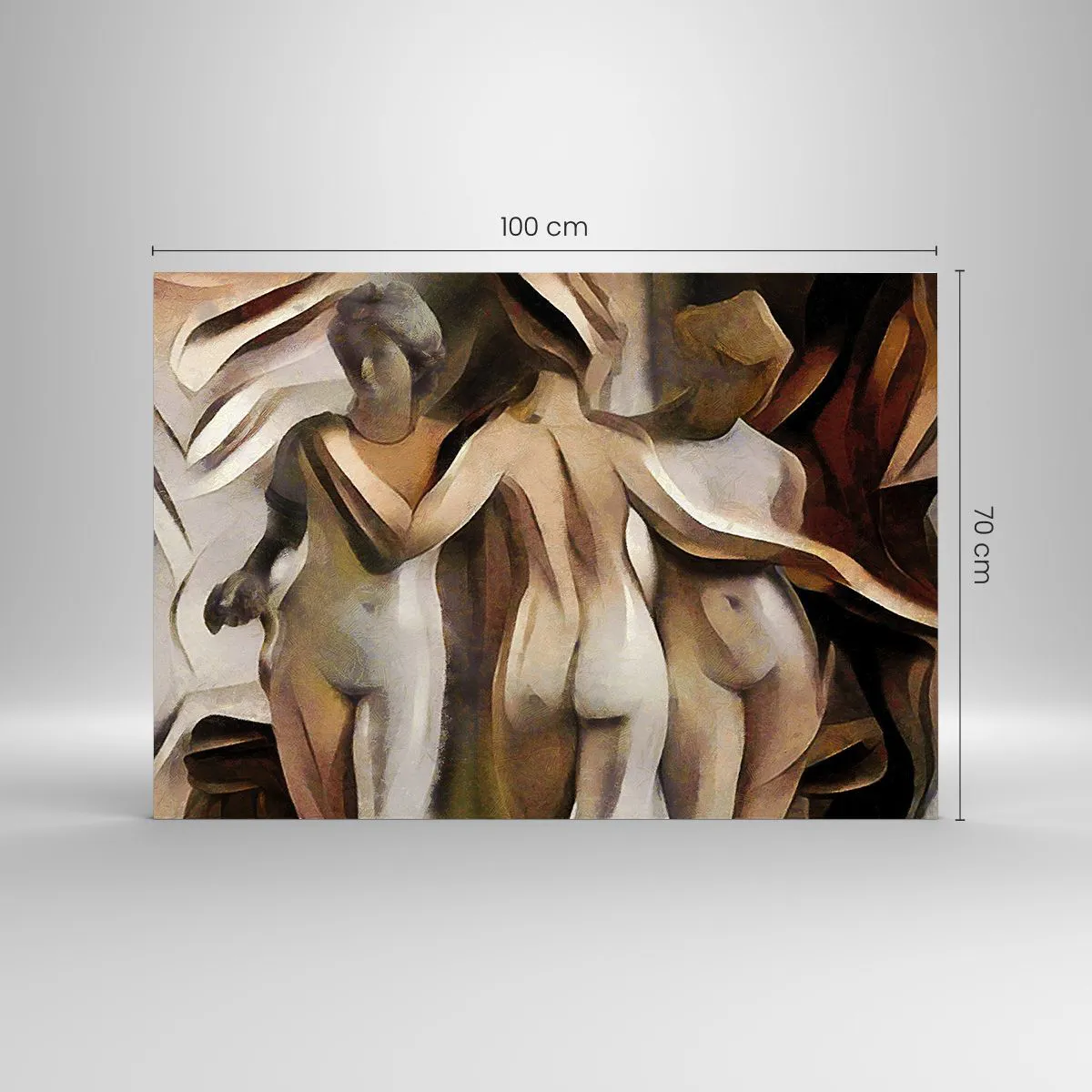 Cuadro sobre vidrio - Impresiones sobre Vidrio - Composición abstracta con tres figuras - 100x70cm - Las tres Gracias 2.0 - Decoración de pared moderna para salón y dormitorio ARTTOR