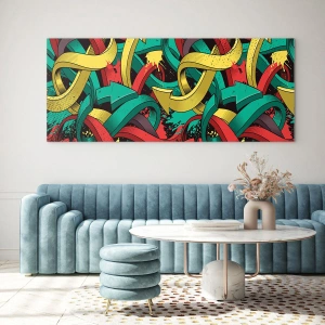 Cuadro sobre vidrio - Impresiones sobre Vidrio - Flechas abstractas en colores vibrantes que crean caos. - 160x50cm - ¿Qué camino tomar? - Decoración de pared moderna para salón y dormitorio ARTTOR