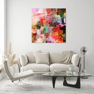 El cuadro sobre el vidrio está hecho de cristal con un grosor de 4 mm. Los bordes tienen un corte trapezoidal mate. El cuadro es seguro y llega listo para ser colgado: posee colgadores metálicos fijados en la parte posterior del cuadro y distanciadores de espuma que regulan la distancia uniforme entre el cuadro y la pared.