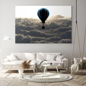 Cuadro sobre vidrio - Impresiones sobre Vidrio - Un globo flotando sobre las nubes al amanecer. - 50x70cm - Un viajero por encima de las nubes - Decoración de pared moderna para salón y dormitorio ARTTOR
