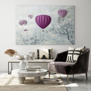 Cuadro de pared - Como barcos en el cielo - Globos morados flotando entre nubes y ramas de árboles