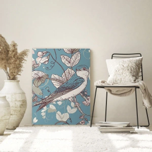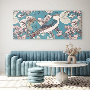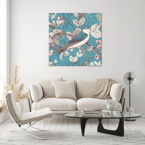 Cuadro sobre vidrio - Impresiones sobre Vidrio - Un pájaro en una rama en un delicado estilo floral. - 70x100cm - En el cerezo - Decoración de pared moderna para salón y dormitorio ARTTOR
