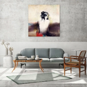 Cuadro sobre vidrio - Impresiones sobre Vidrio - Un retrato sutil de una mujer en estilo artístico. - 70x100cm - Líneas suaves, formas ovaladas - Decoración de pared moderna para salón y dormitorio ARTTOR