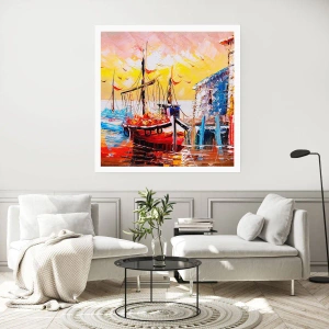 Póster - Puerto pintoresco al atardecer con barcos de pesca - 100x70cm - Feliz regreso - Decoración de pared moderna para salón y dormitorio ARTTOR