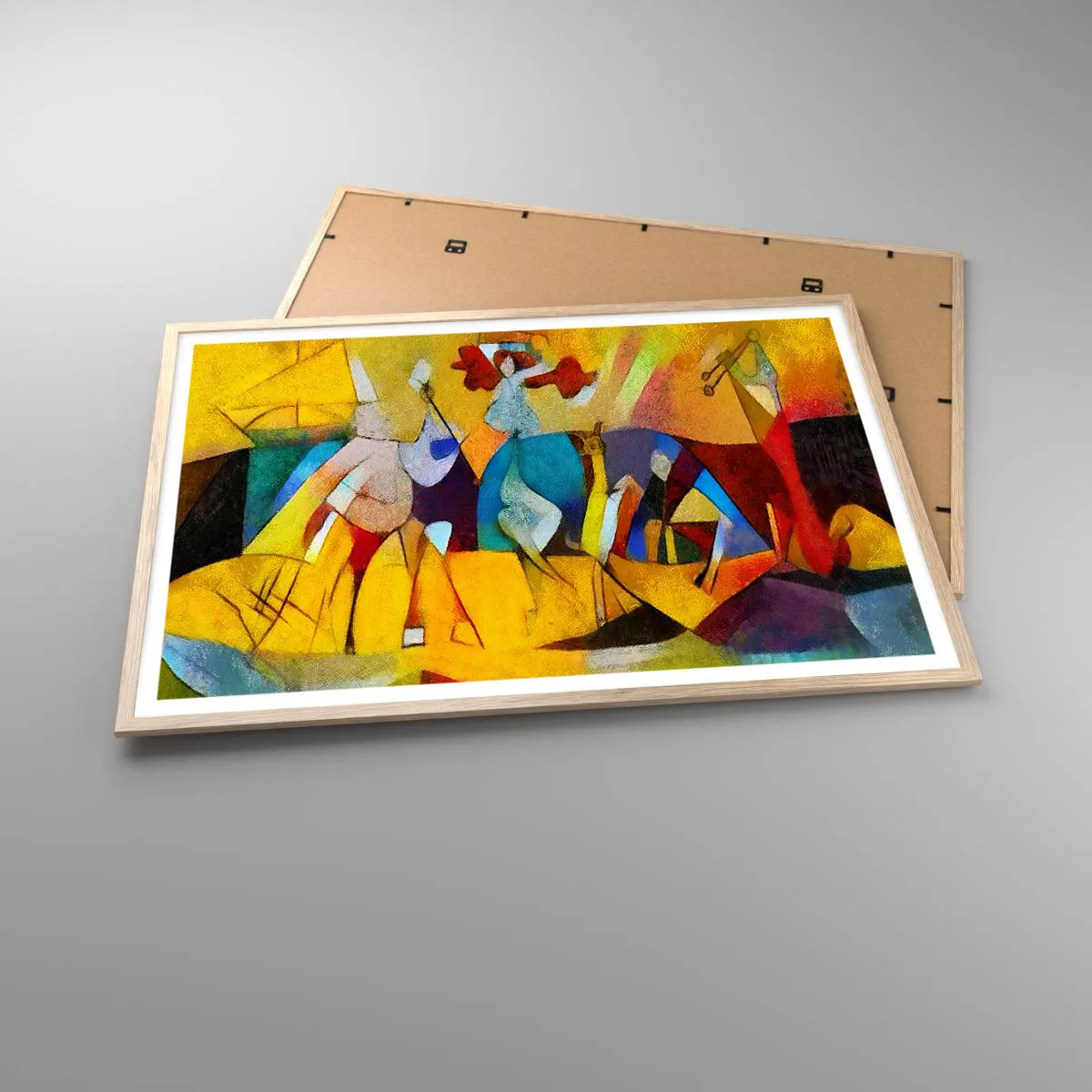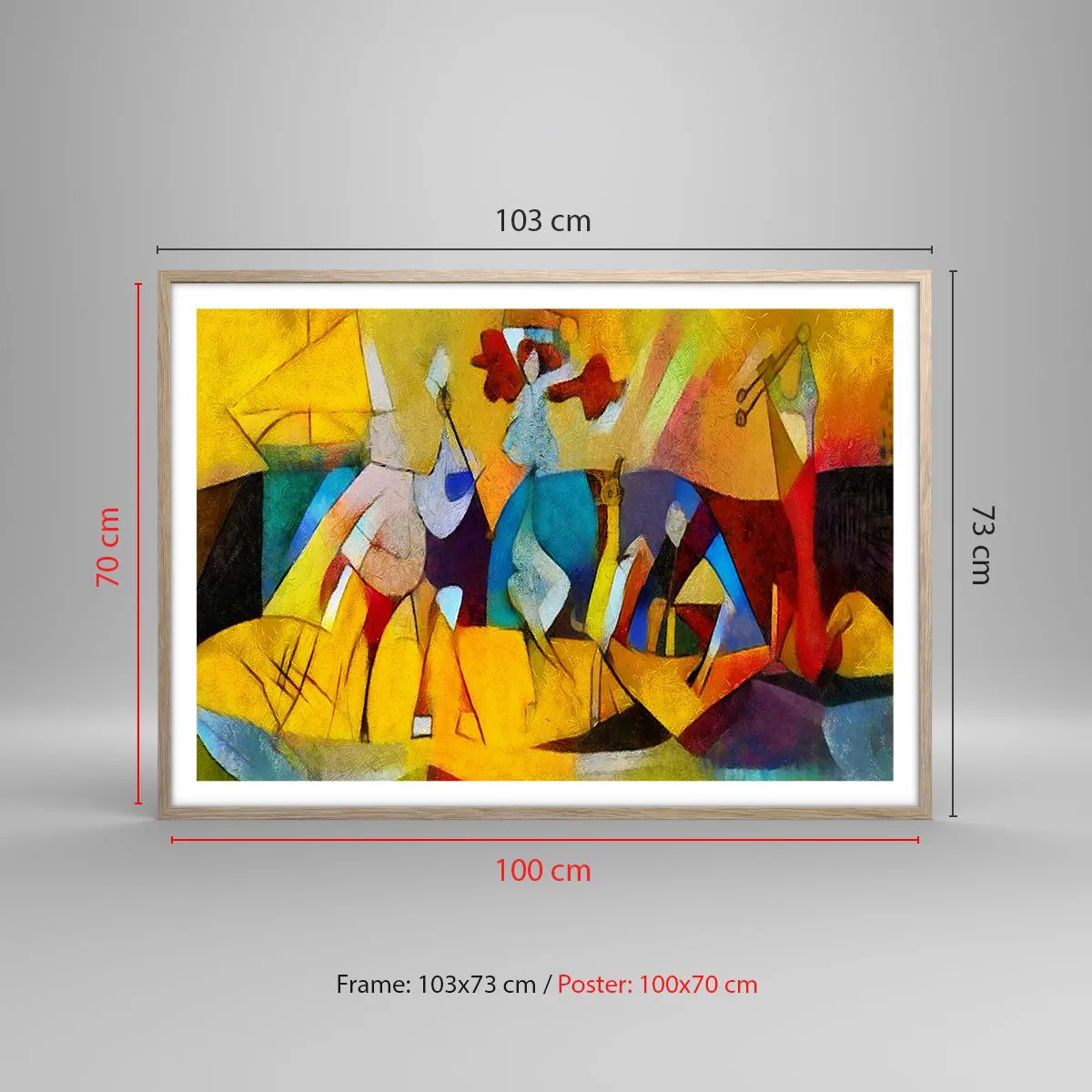 Póster en marco roble claro - Sol - vida - alegría - 100x70 cm
