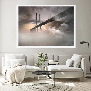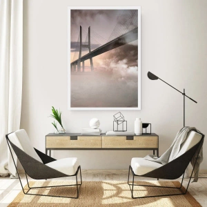 Póster - Un puente en la niebla al amanecer. - 50x70cm - Junto al río que no existe - Decoración de pared moderna para salón y dormitorio ARTTOR