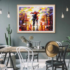Póster en marco roble claro - Juntos a través de la noche y la lluvia - 100x70 cm