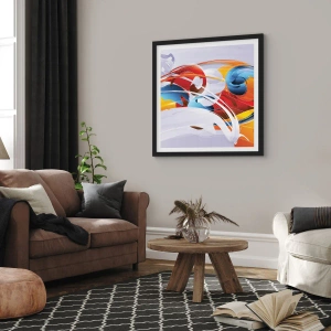 Póster en marco negro - Abstracción colorida con líneas dinámicas y colores vivos. - 70x50cm - Danza de los elementos - Decoración de pared moderna para salón y dormitorio ARTTOR