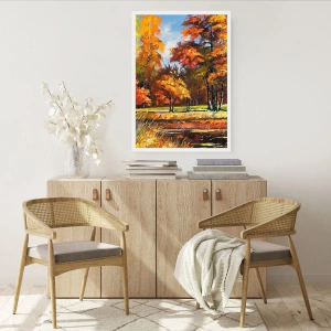 Póster - Paisaje otoñal con árboles coloridos - 50x70cm - Paisaje en dorado y marrón - Decoración de pared moderna para salón y dormitorio ARTTOR