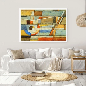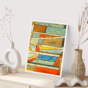 Póster - Abstracción geométrica en tonos beige, azul y naranja. - 100x70cm - Cubismo en una obra - Decoración de pared moderna para salón y dormitorio ARTTOR