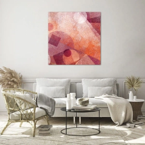 Cuadro sobre vidrio - Impresiones sobre Vidrio - Formas geométricas abstractas en tonos pastel de rosa. - 120x50cm - Transformaciones geométricas en rosa - Decoración de pared moderna para salón y dormitorio ARTTOR