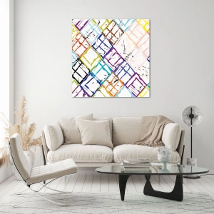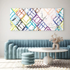 Cuadro sobre vidrio - Impresiones sobre Vidrio - Patrón abstracto con rombos multicolores - 120x80cm - Habitáculos en alquiler - Decoración de pared moderna para salón y dormitorio ARTTOR
