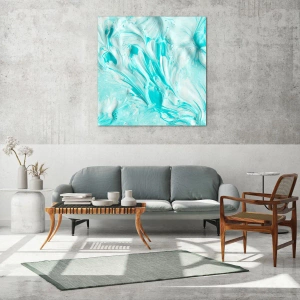 Cuadro sobre vidrio - Impresiones sobre Vidrio - Patrones abstractos azules y blancos que se asemejan al movimiento de las olas - 50x70cm - Juntos para siempre - Decoración de pared moderna para salón y dormitorio ARTTOR