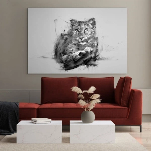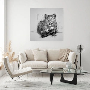 Cuadro sobre vidrio - Impresiones sobre Vidrio - Un dibujo de un tigre en estilo monocromático sobre un fondo claro. - 120x80cm - Sí, estoy escuchando - Decoración de pared moderna para salón y dormitorio ARTTOR