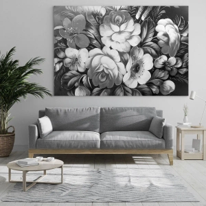 Cuadro sobre vidrio - Impresiones sobre Vidrio - Flores en blanco y negro en una composición clásica y elegante. - 160x50cm - Hermoso incluso en el gris - Decoración de pared moderna para salón y dormitorio ARTTOR