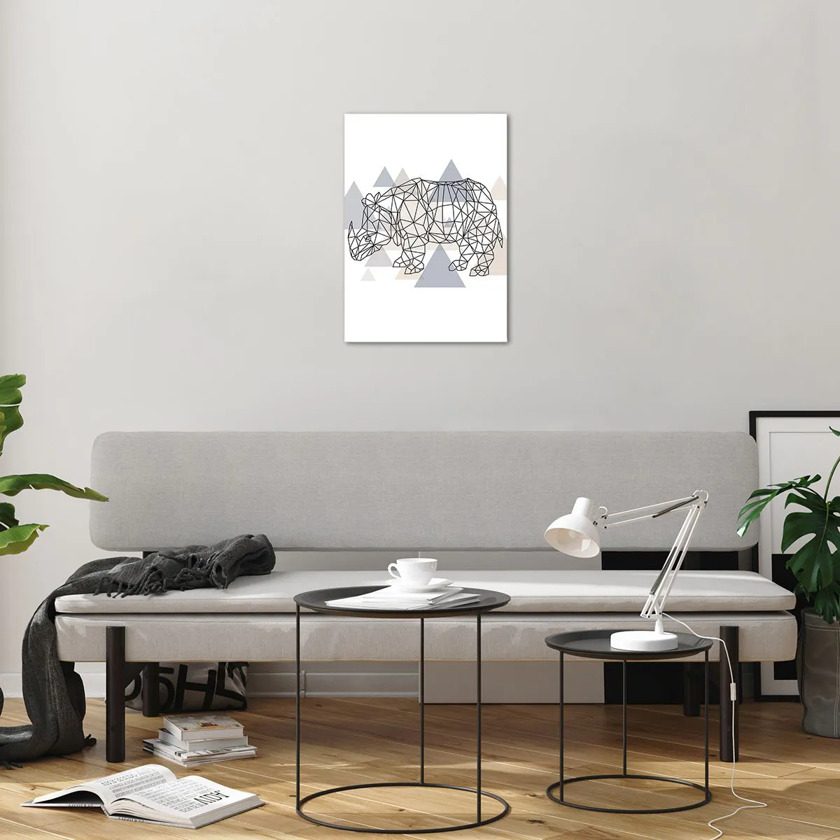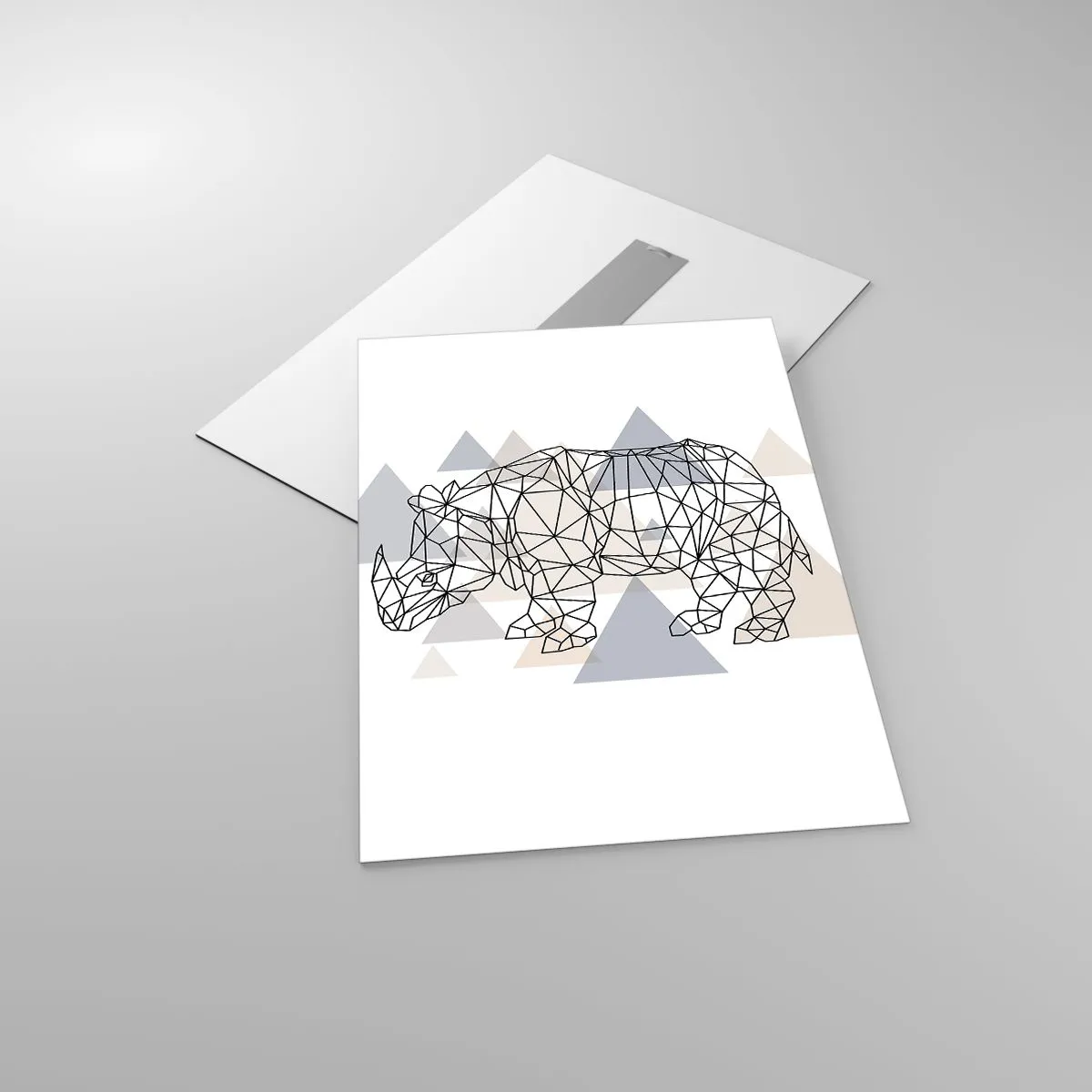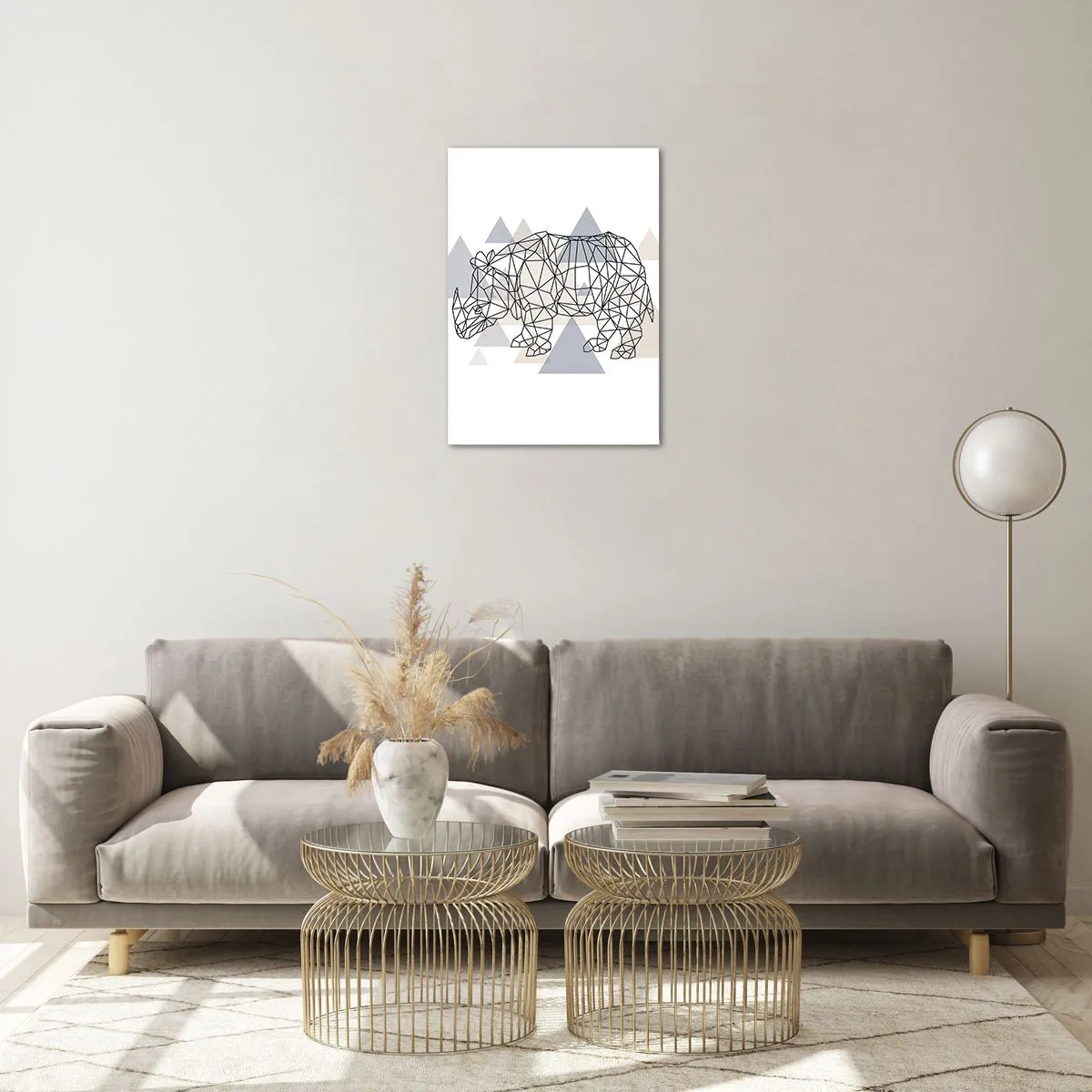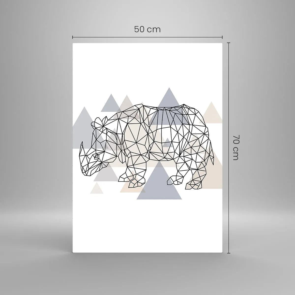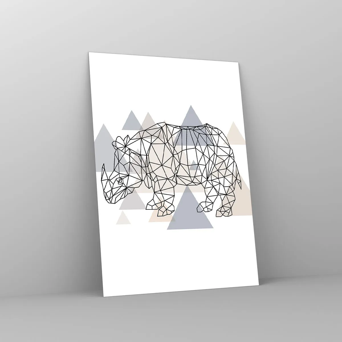 Cuadro sobre vidrio - Impresiones sobre Vidrio - Dibujo geométrico de un rinoceronte sobre un fondo claro. - 50x70cm - Estructura de la fuerza - Decoración de pared moderna para salón y dormitorio ARTTOR