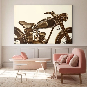 Cuadro sobre vidrio - Impresiones sobre Vidrio - Elegante motocicleta retro en tonos sepia sobre un fondo claro. - 50x70cm - Añoranza de los clásicos - Decoración de pared moderna para salón y dormitorio ARTTOR