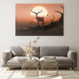 Cuadro sobre vidrio - Impresiones sobre Vidrio - Silueta de un ciervo con una gran luna rodeada de ramas como telón de fondo. - 100x70cm - Esta noche es diferente a cualquier otra - Decoración de pared moderna para salón y dormitorio ARTTOR