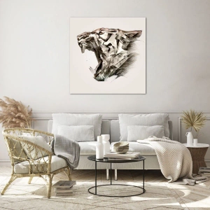 Cuadro sobre vidrio - Impresiones sobre Vidrio - Ilustración geométrica de un tigre rugiente sobre un fondo claro - 70x50cm - Ya sabes quién manda - Decoración de pared moderna para salón y dormitorio ARTTOR