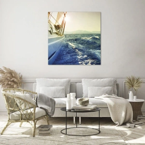 El cuadro mural "Para la Aventura" es una decoración única que captura la belleza y la tranquilidad de navegar en el mar. Representa un velero navegando sobre una superficie de agua tranquila, envuelto por los rayos del sol poniente. Sutiles olas y una luz cálida crean una composición armoniosa que introduce una atmósfera de relajación y elegancia en el interior.