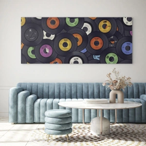 Cuadro sobre vidrio - Impresiones sobre Vidrio - Discos de vinilo de colores sobre un fondo negro - 50x70cm - Colores de los clásicos - Decoración de pared moderna para salón y dormitorio ARTTOR