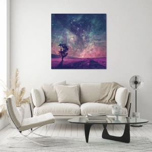 Cuadro de pared - Bajo un cielo mágico - Un árbol contra el cielo estrellado y la galaxia