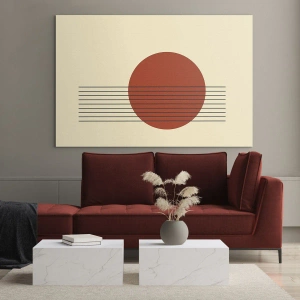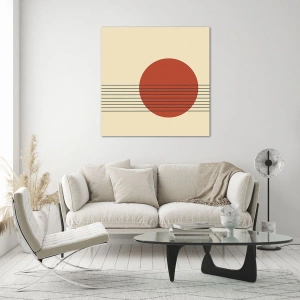Cuadro sobre vidrio - Impresiones sobre Vidrio - Gráfico minimalista con círculo rojo y líneas. - 50x70cm - Cruzando el círculo - Decoración de pared moderna para salón y dormitorio ARTTOR