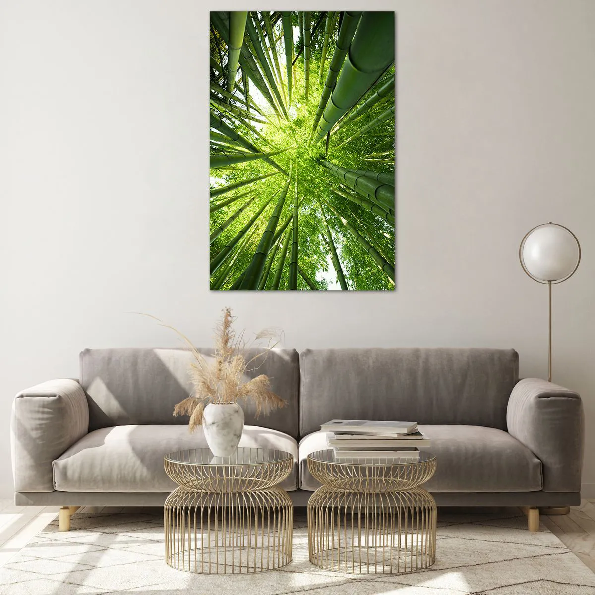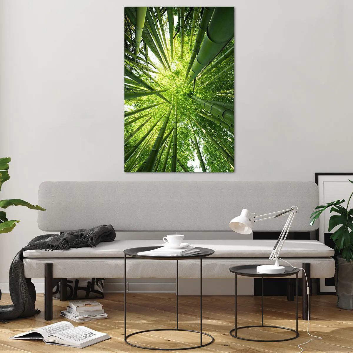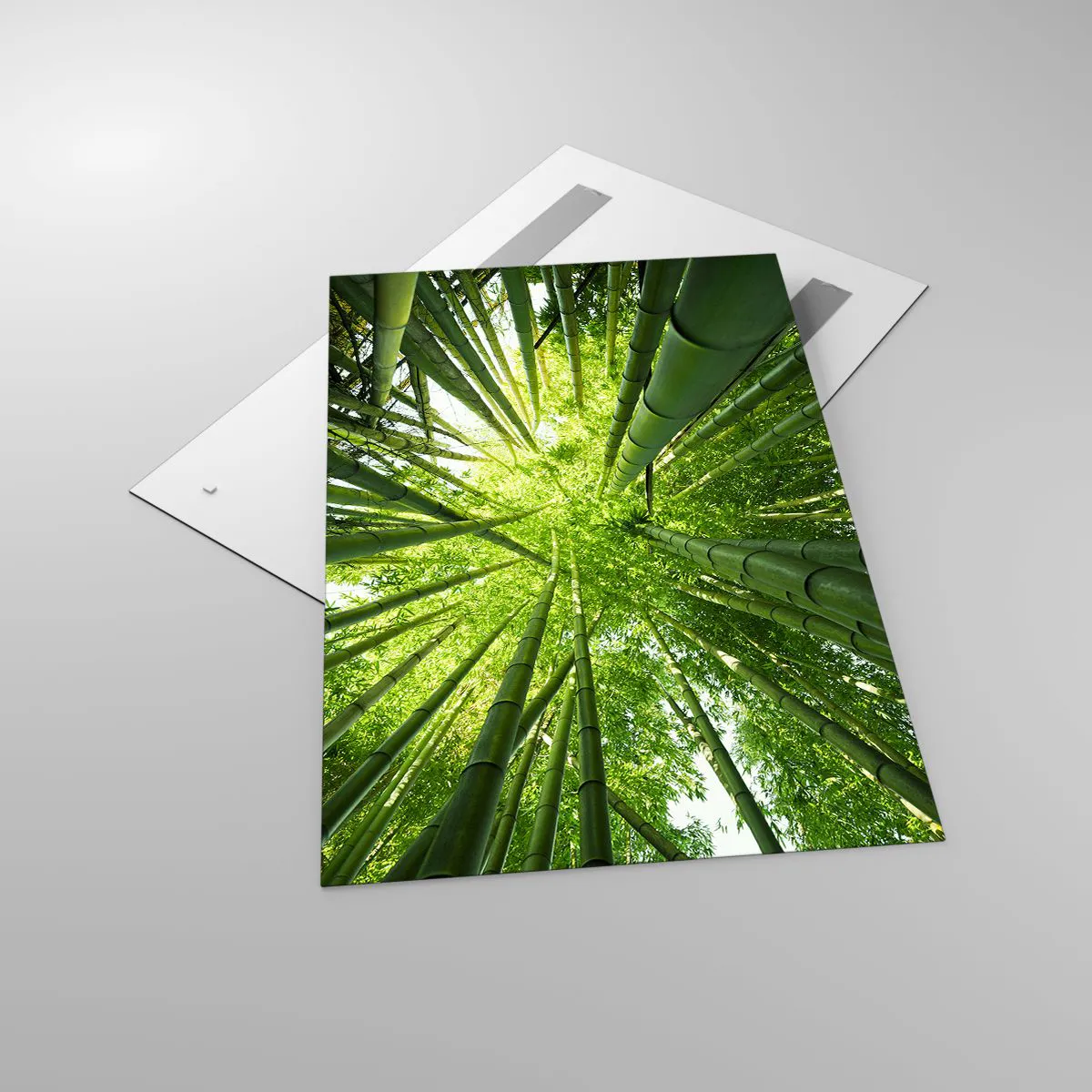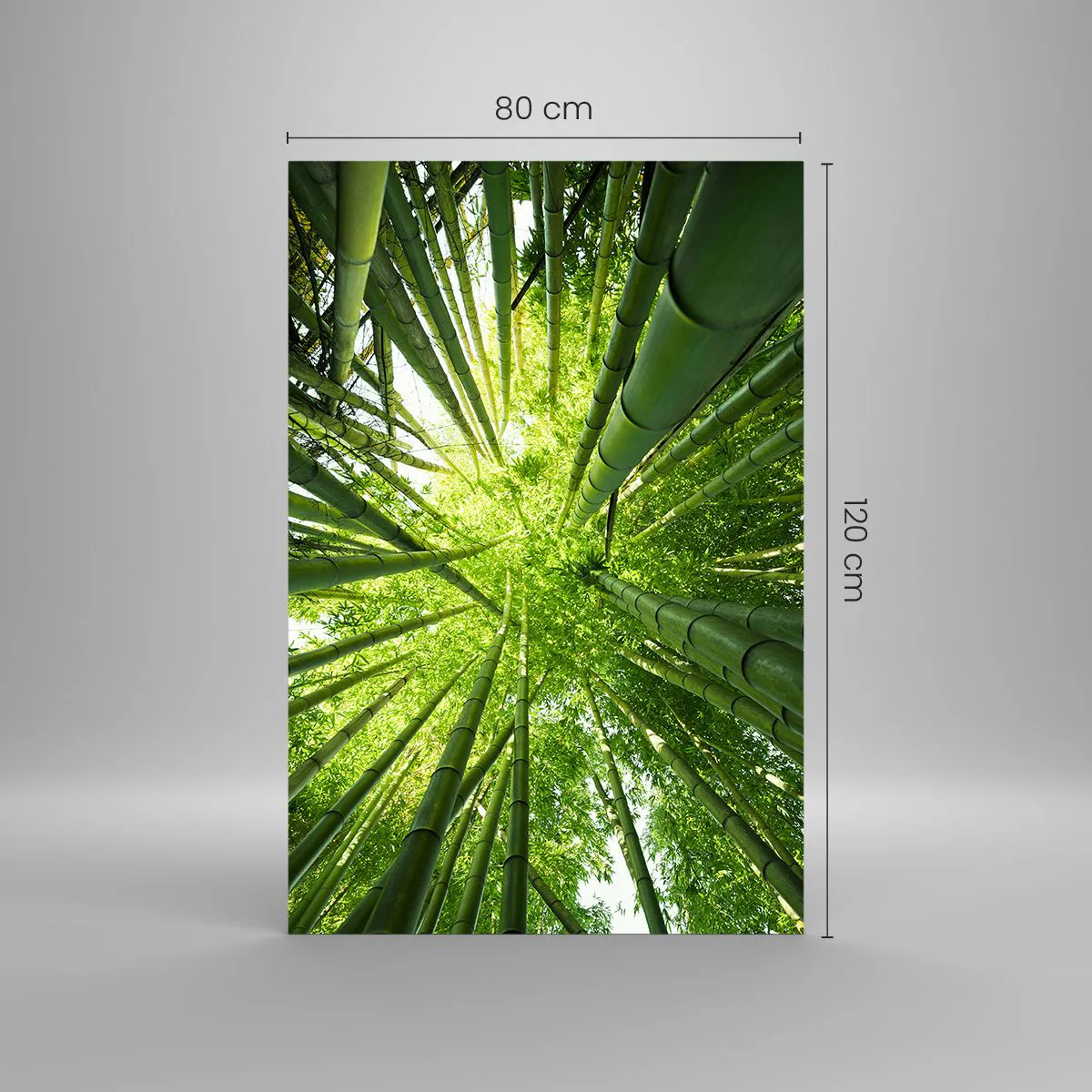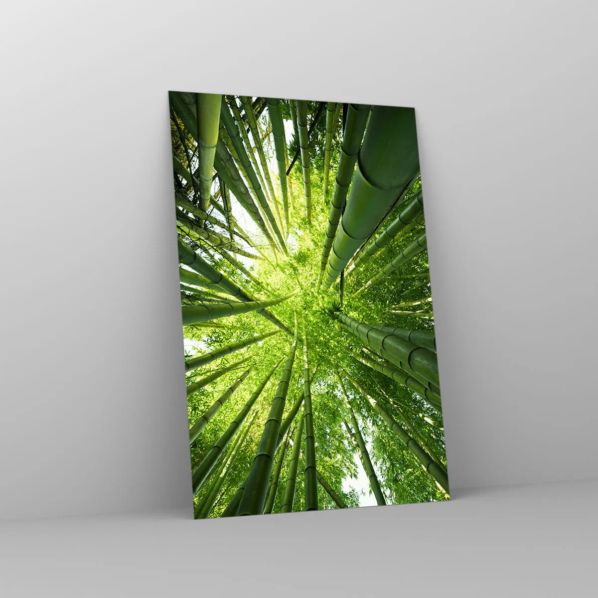Cuadro sobre vidrio - Impresiones sobre Vidrio - Vista hacia arriba a través de un bosque de bambú verde. - 80x120cm - En un bosquecillo de bambú - Decoración de pared moderna para salón y dormitorio ARTTOR