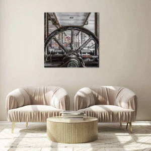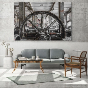 Cuadro sobre vidrio - Impresiones sobre Vidrio - Interior industrial histórico con una rueda dentada - 100x70cm - La vida secreta de una fábrica - Decoración de pared moderna para salón y dormitorio ARTTOR