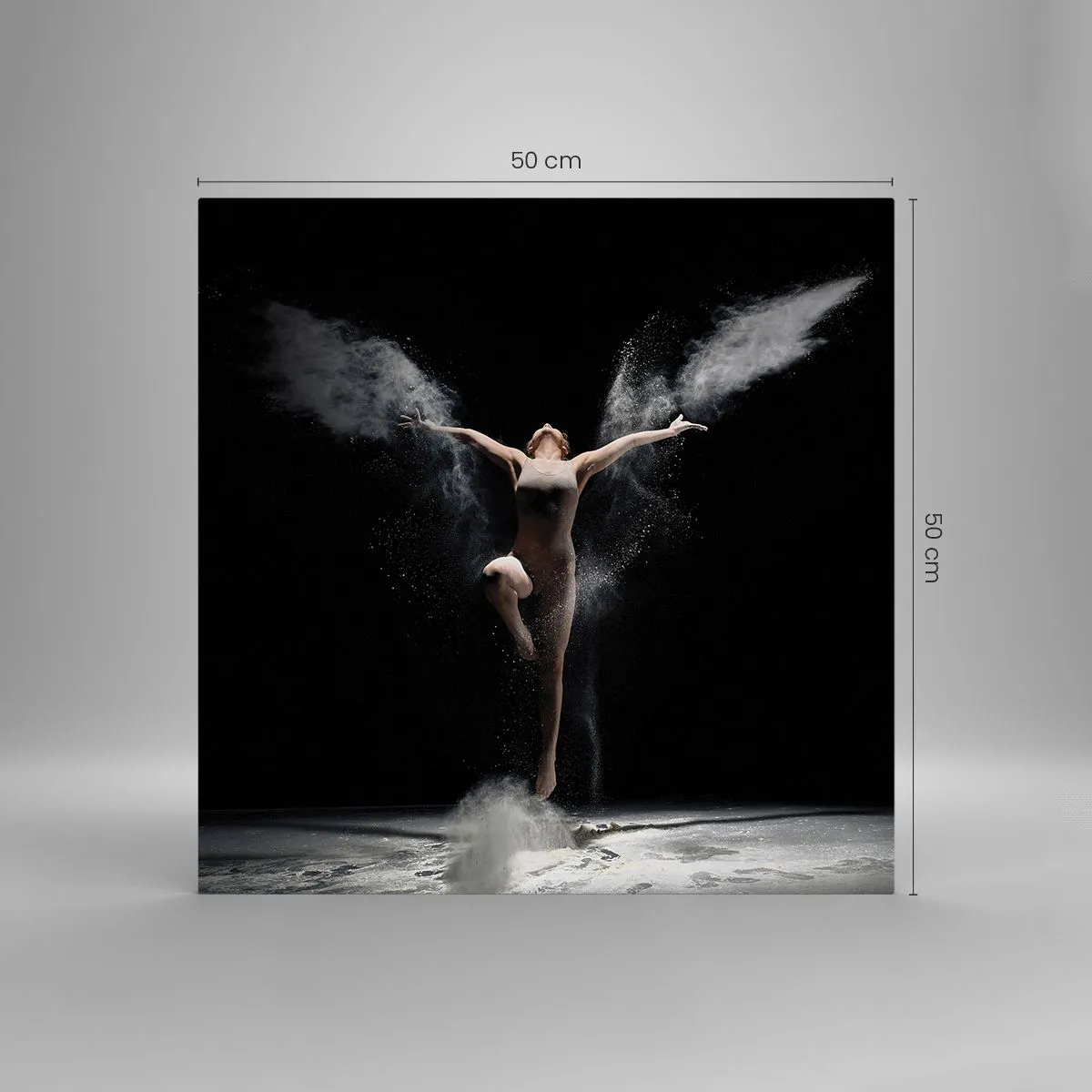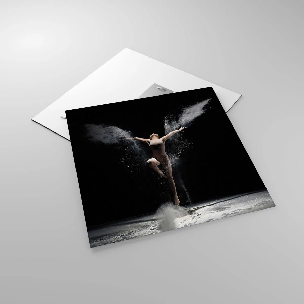 El cuadro sobre el vidrio está hecho de cristal con un grosor de 4 mm. Los bordes tienen un corte trapezoidal mate. El cuadro es seguro y llega listo para ser colgado: posee colgadores metálicos fijados en la parte posterior del cuadro y distanciadores de espuma que regulan la distancia uniforme entre el cuadro y la pared.