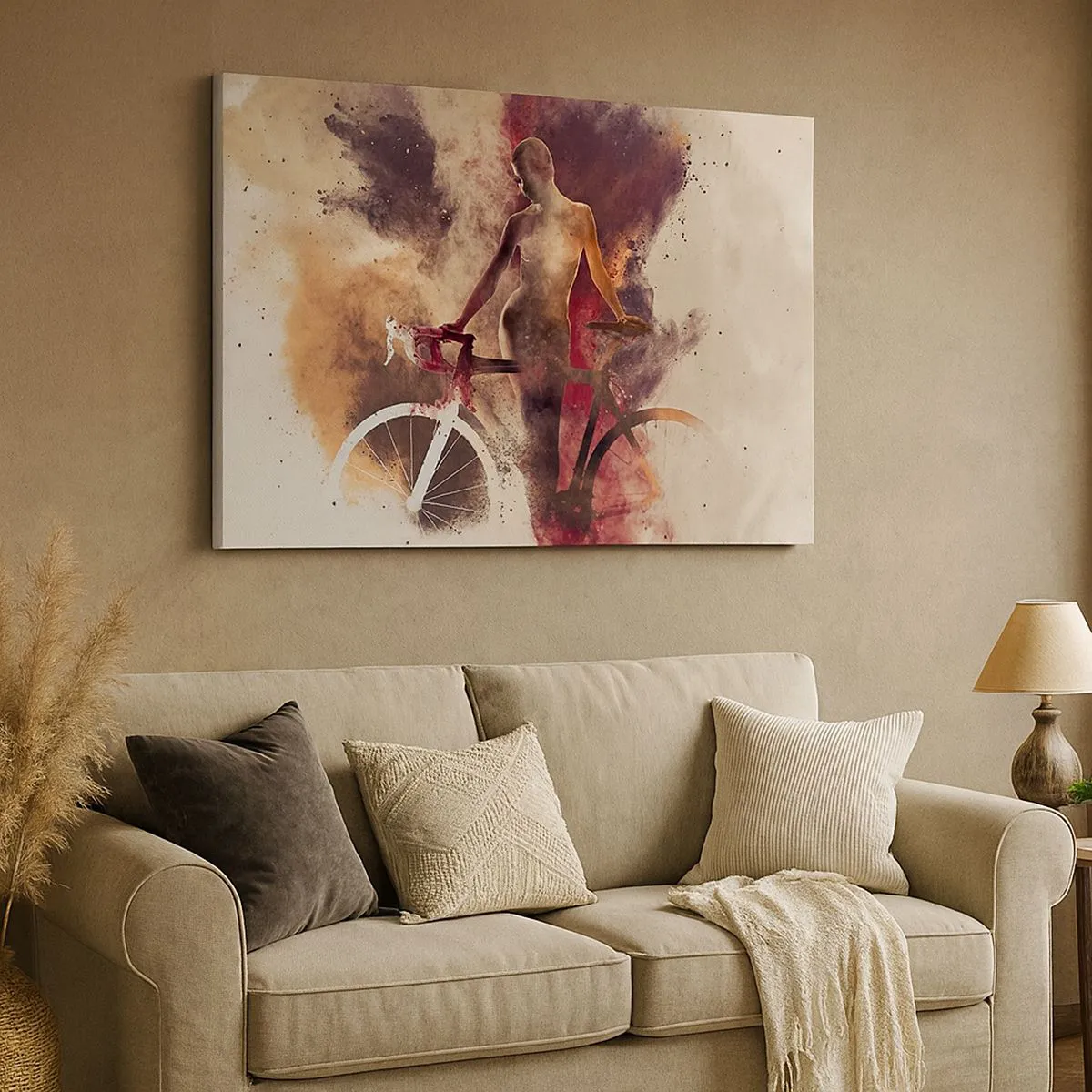 Cuadro sobre lienzo - Impresión de Imagen - Silueta abstracta con una bicicleta en estilo artístico. - 120x80cm - En las formas de mármol un alma ciclista - Decoración de pared moderna para salón y dormitorio ARTTOR