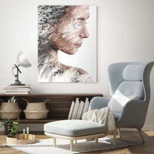 Cuadro sobre vidrio - Impresiones sobre Vidrio - Retrato de una mujer con ramas al fondo - 70x50cm - Espíritu del bosque - Decoración de pared moderna para salón y dormitorio ARTTOR