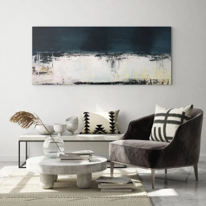 Cuadro sobre vidrio - Impresiones sobre Vidrio - Paisaje abstracto en tonos azul marino y blanco. - 50x70cm - Composición horizontal - Decoración de pared moderna para salón y dormitorio ARTTOR