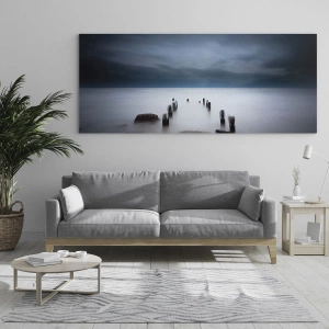 Cuadro sobre vidrio - Impresiones sobre Vidrio - El viejo muelle con el mar en calma como telón de fondo - 80x120cm - El lago del pensamiento - Decoración de pared moderna para salón y dormitorio ARTTOR