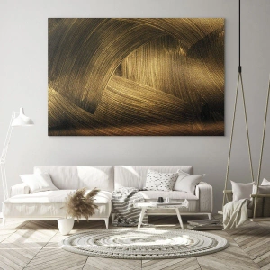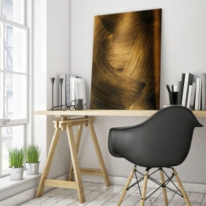 Cuadro sobre vidrio - Impresiones sobre Vidrio - Pinceladas abstractas doradas - 80x120cm - En un laberinto de oro - Decoración de pared moderna para salón y dormitorio ARTTOR