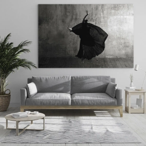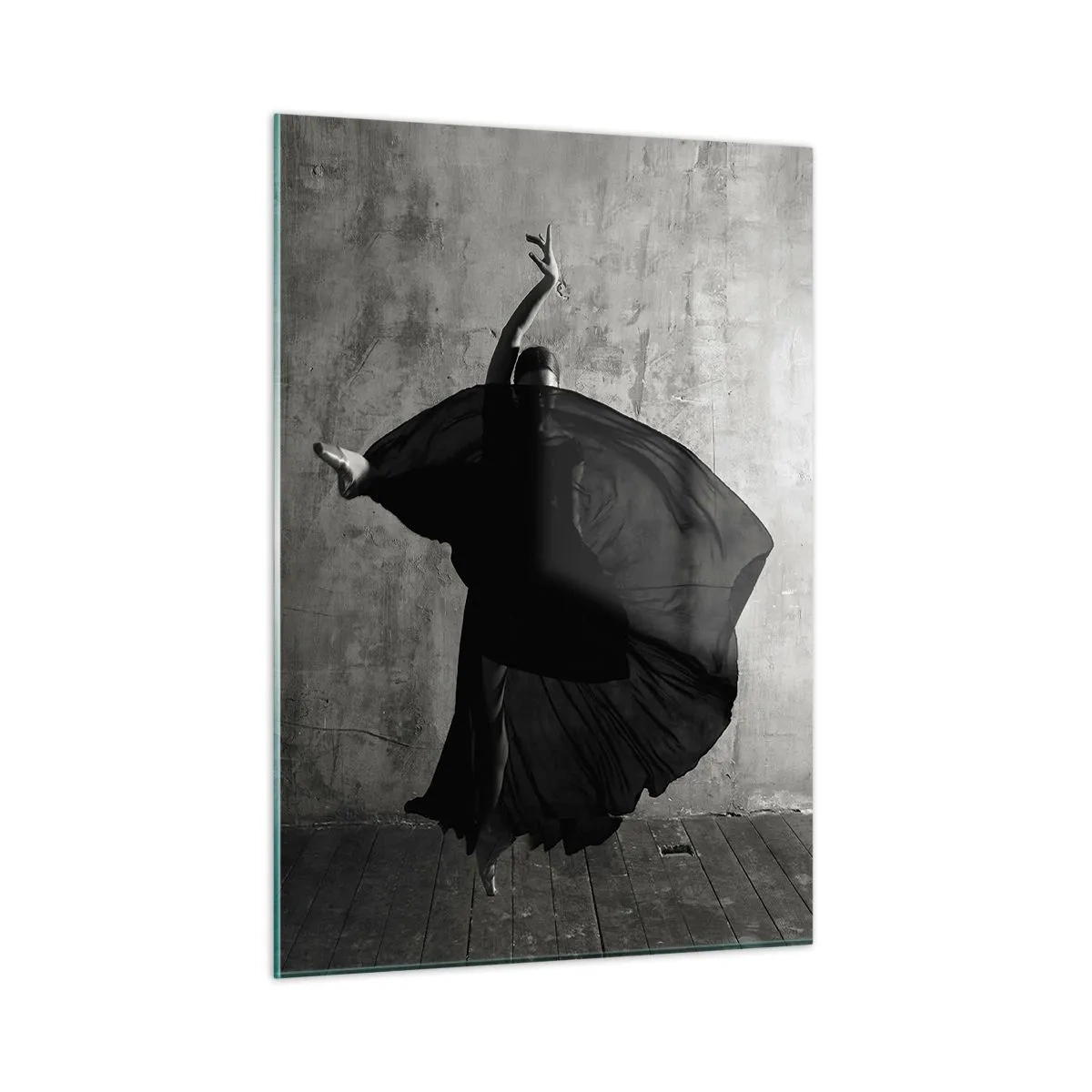 Cuadro sobre vidrio - Impresiones sobre Vidrio - Silueta en blanco y negro de una bailarina en una pose dinámica. - 50x70cm - Cargada de pasión - Decoración de pared moderna para salón y dormitorio ARTTOR