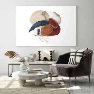 Cuadro sobre vidrio - Impresiones sobre Vidrio - Una composición abstracta en tonos cálidos con elementos acuáticos. - 70x50cm - Composición ovalada - Decoración de pared moderna para salón y dormitorio ARTTOR
